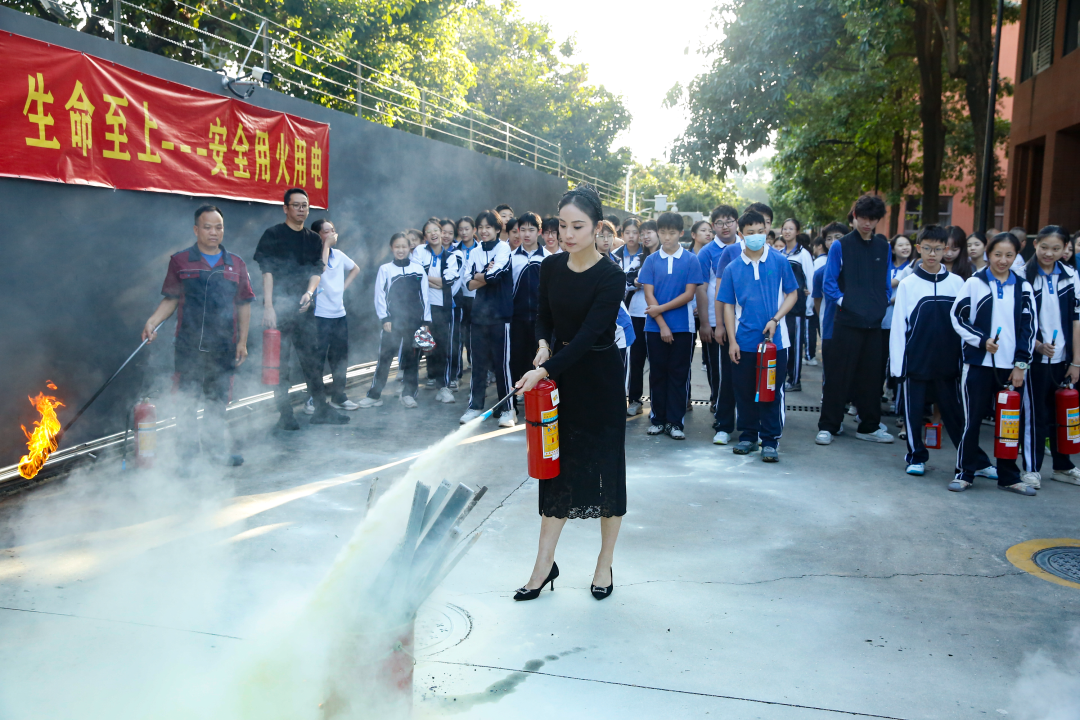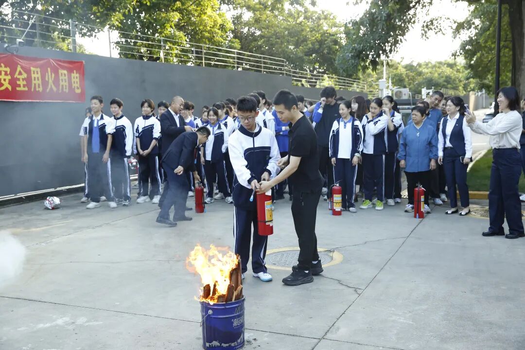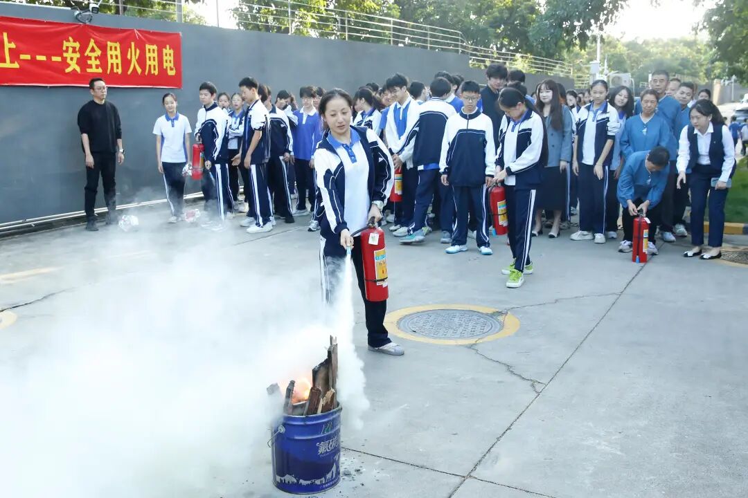 安全集结完毕后,消防宣传员对疏散演练的整体表现予以充分肯定。在随后的实操培训环节,宣传员系统讲解了防毒面罩的规范佩戴方式与灭火器的“提、拔、握、压”操作要领,并指导学生代表进行现场灭火模拟,强化师生对消防器材的实际运用能力。