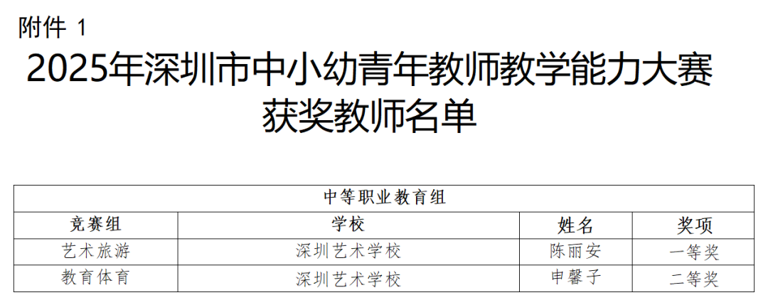 2025 年 9 月 11 日,深圳艺术学校青年教师教学能力比赛在音乐厅落幕。经评委团多维度细致评审,声乐学科陈丽安老师、文化课申馨子老师、唐大军老师脱颖而出代表学校参加了市赛。