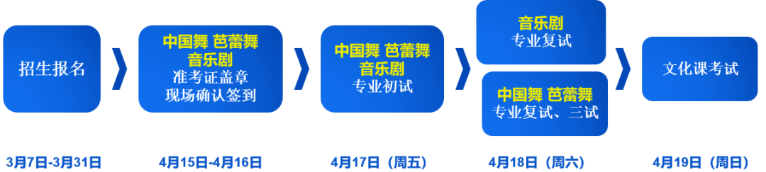 (3)中国舞、芭蕾舞、音乐剧专业考试时间安排