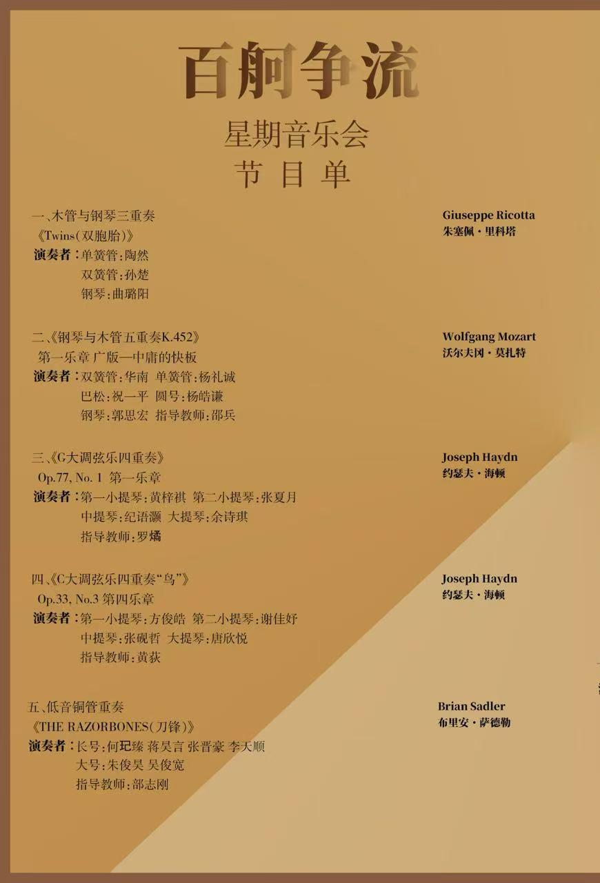 2025年12月23日(周二),“百舸争流”星期音乐会——校园系列重奏专场