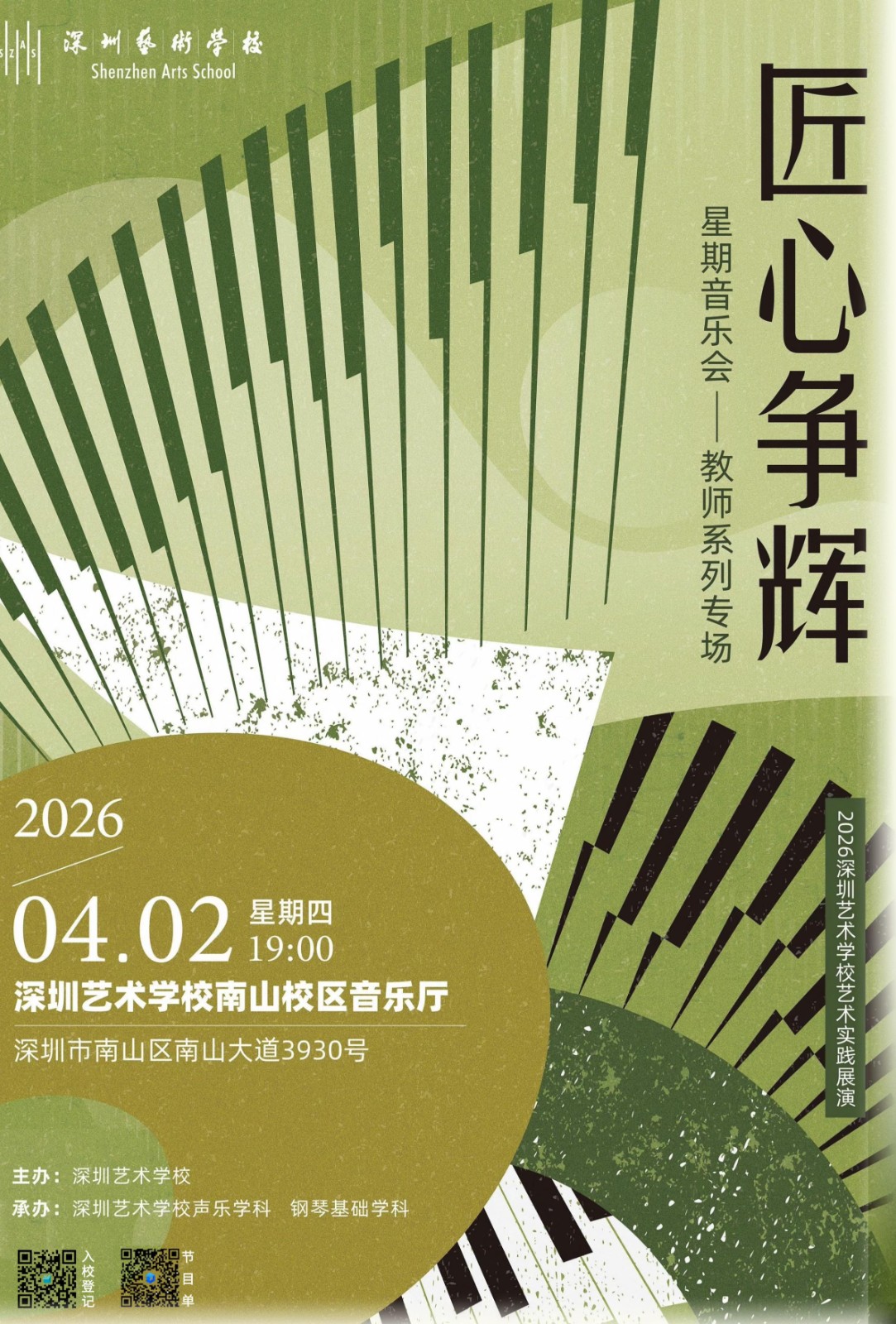 2026年04月02日(星期四)19:00,“匠心争辉”星期音乐会——教师系列专场