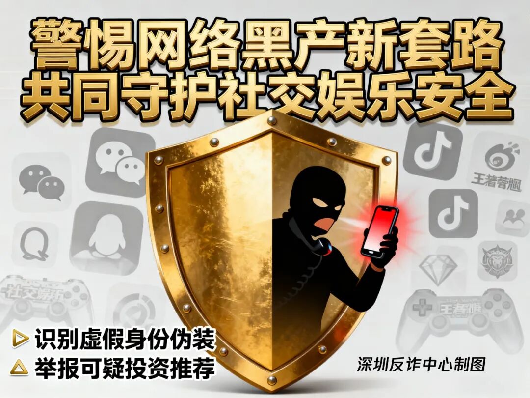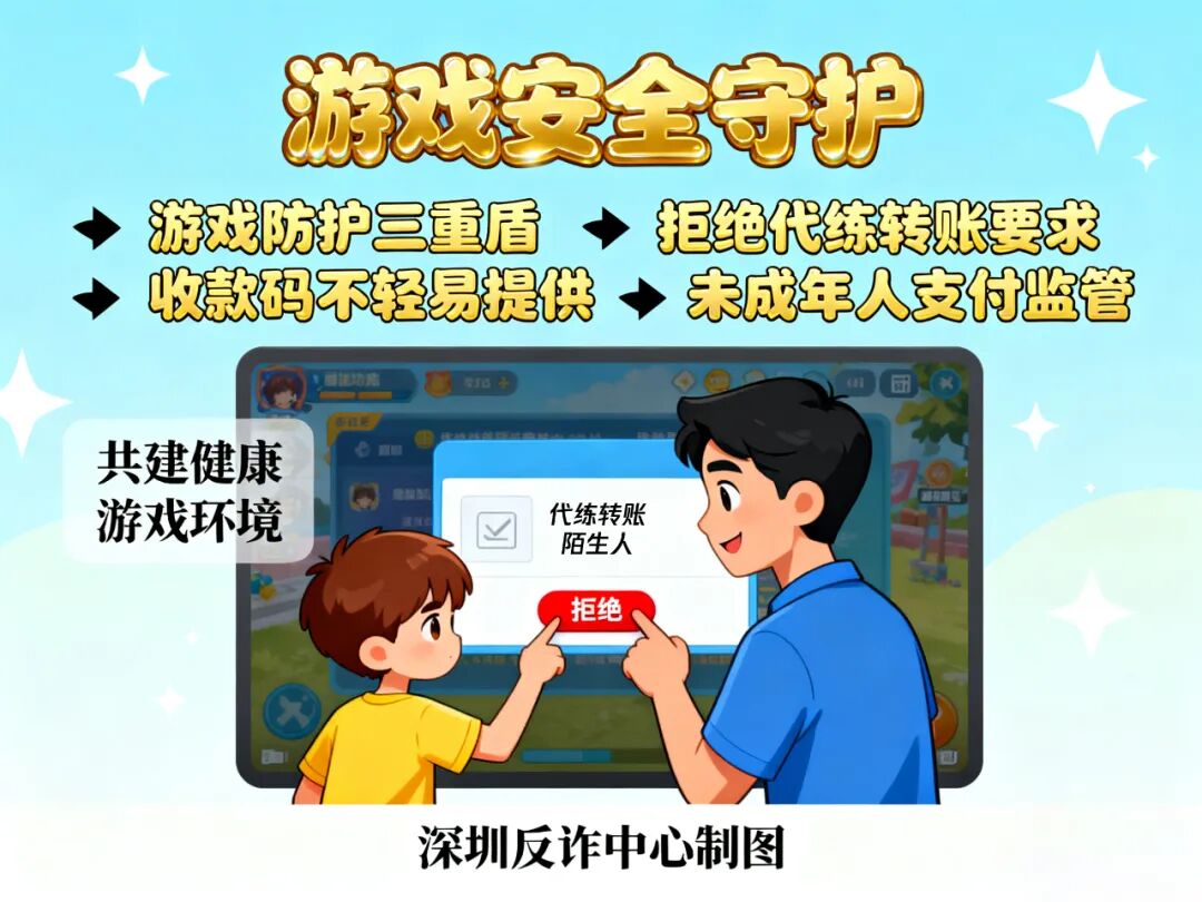 深圳反诈中心监测到,有犯罪分子在《王者荣耀》等游戏中物色未成年人,以“游戏代练”、“装备买卖”等名义,诱骗他们提供收款二维码或银行账户,协助转移涉诈资金。