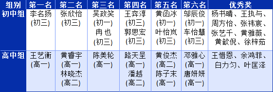 初中组第三名获奖者(并列)吴政笑、冉也,