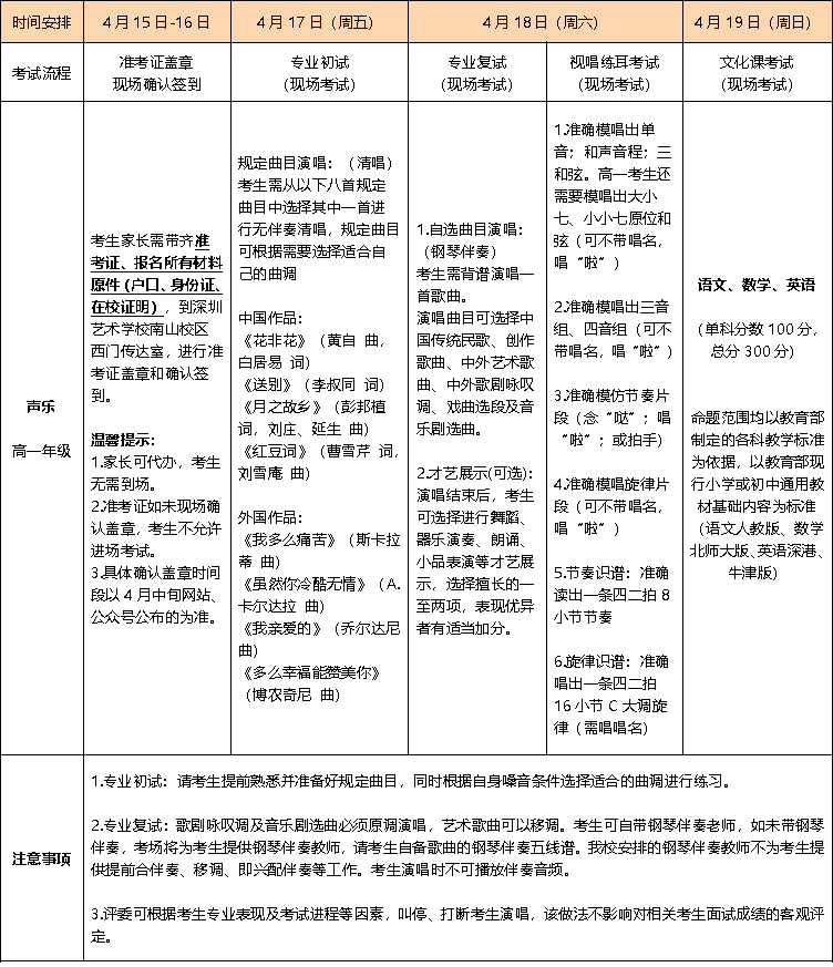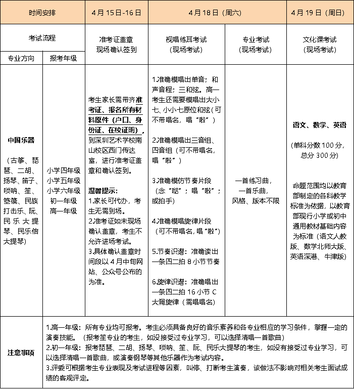 (2)管弦、民乐、现代艺术器乐类专业考试时间安排