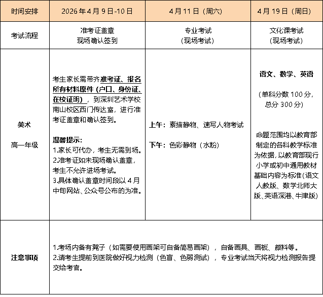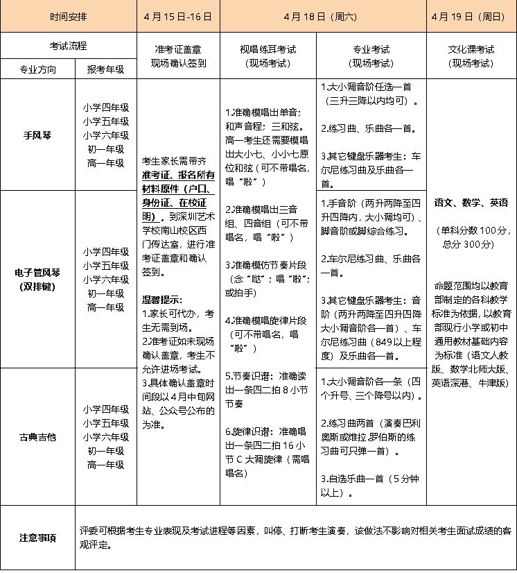 为了帮助广大考生了解深圳艺术学校各个专业的考试形式及程度要求,各专业科室将安排考前指导咨询会。各专业的考前咨询会具体安排将在学校官网、公众号另行公布,请考生及时关注。